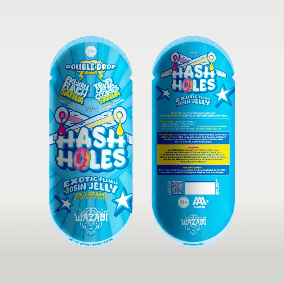 Indulge in a smoking experience that’s as bold as it is flavorful. Wazabi Exotics Double Drop Hash Holes are crafted with 1.5g of premium flower, dripping in live rosin jelly for a potent, velvety hit that leaves you craving more.