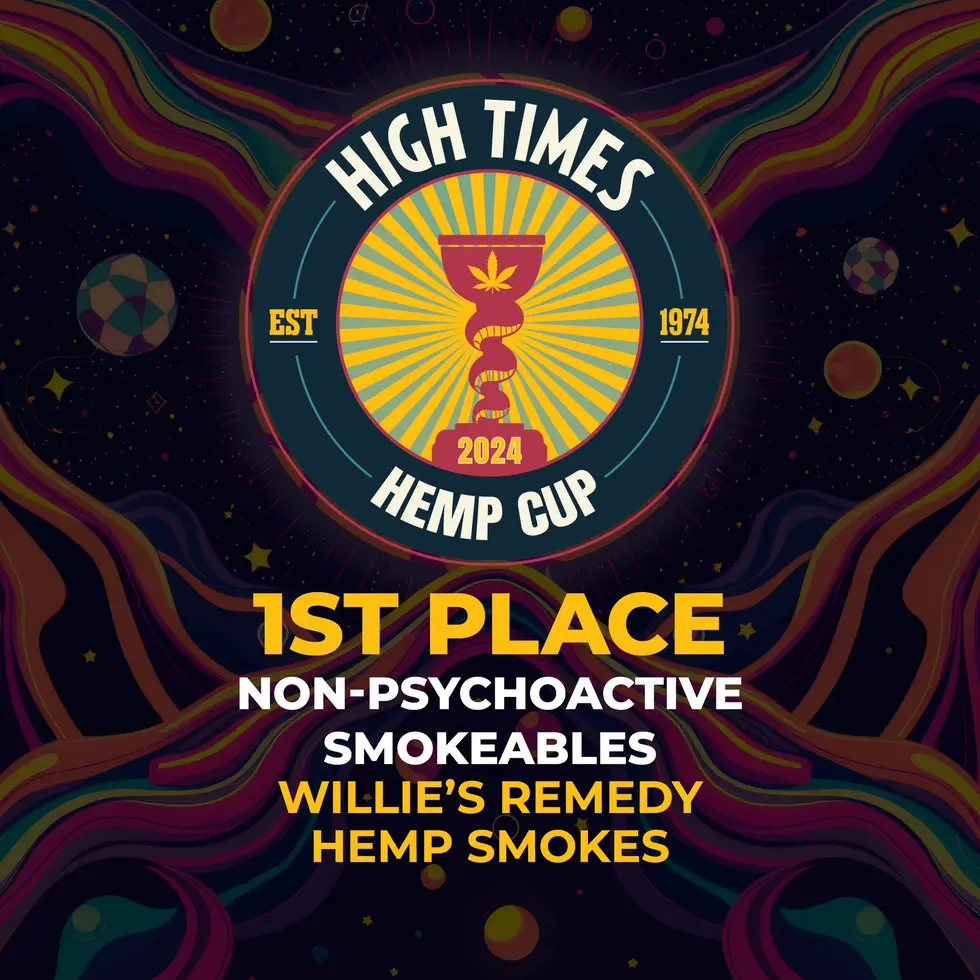 Truly setting the gold standard in the hemp industry, Willie’s Remedy Hemp Smokes won gold in the prestigious High Times Hemp Cup for the Non-Psychoactive Smokables category.